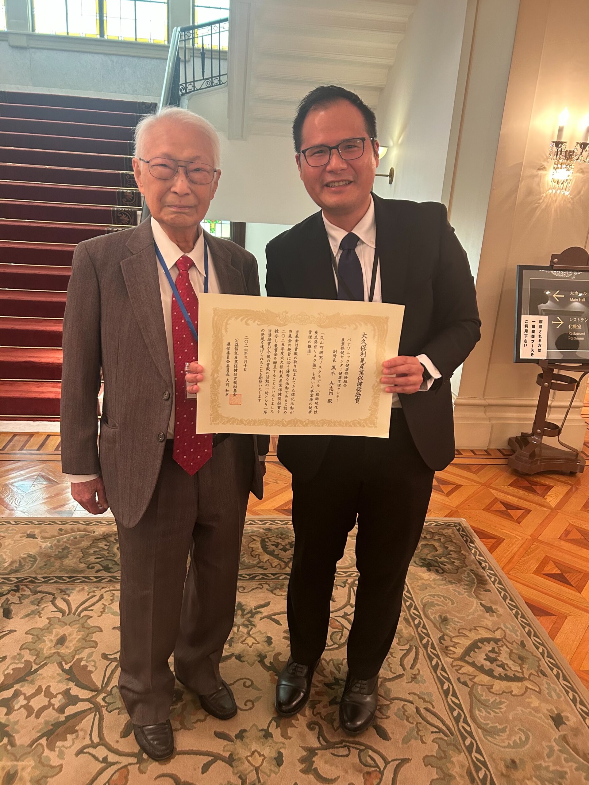 この度、副会長の黒木和志郎先生が、多年にわたる産業保健分野への多大な貢献と優れた研究成果が認められ、「大久保利晃産業保健研究奨励賞」sangyohoken_a.pdf を受賞されました。
