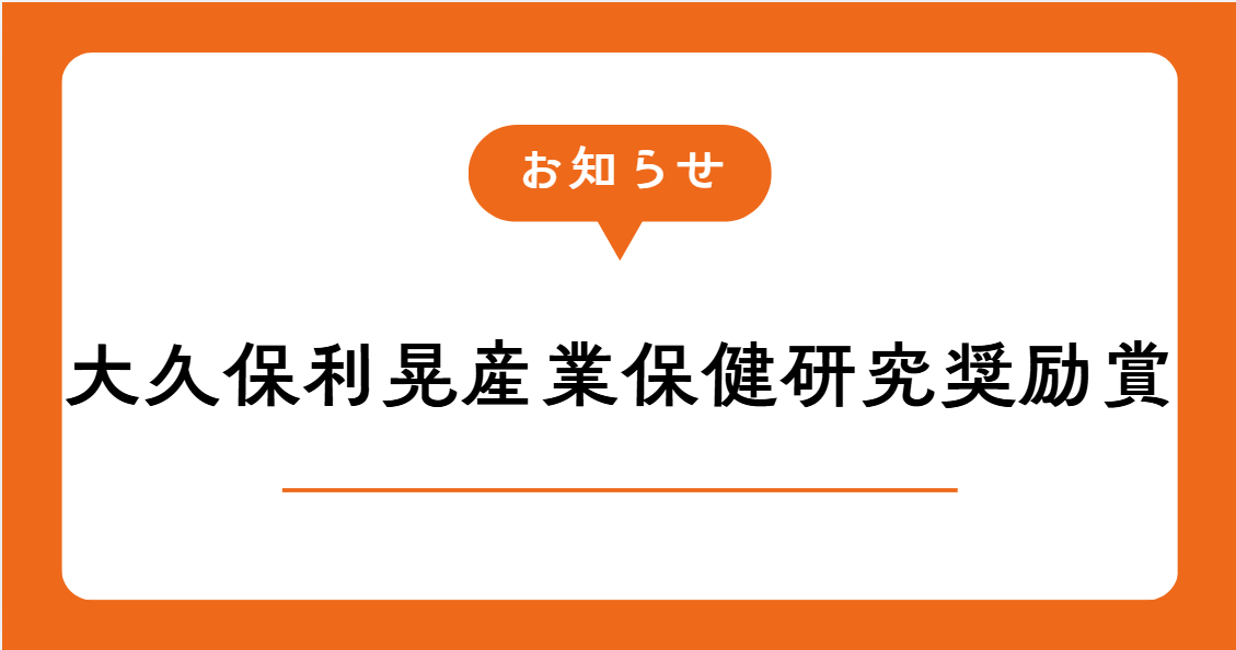 本賞は、産業保健の発展に寄与する顕著な業績を挙げた研究者に授与される大変名誉ある賞です。黒木先生のこれまでの真摯な取り組みが実を結ばれたことを、事務局一同、心よりお慶び申し上げます。